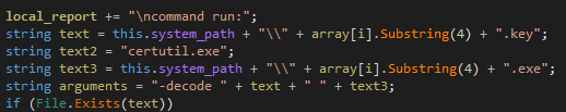 Installer.exe uses certutil.exe (part of the windows, used for certificate services) for encoding and decoding the file content of WSVCHOST.KEY.