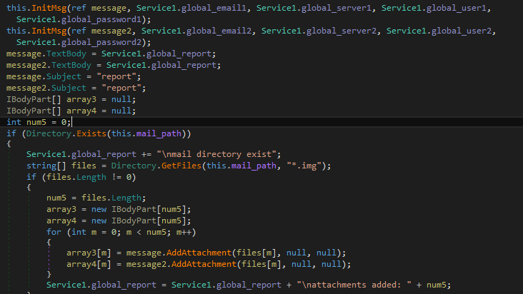 Thereafter, both the files are sent back to the malware actor via SMTP in the form of attachment and using port 465.
