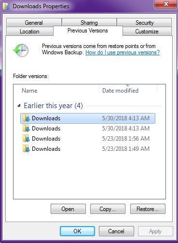 As shown above, the victim can easily restore the files by going back to the system restore point or restoring to previous folder option.